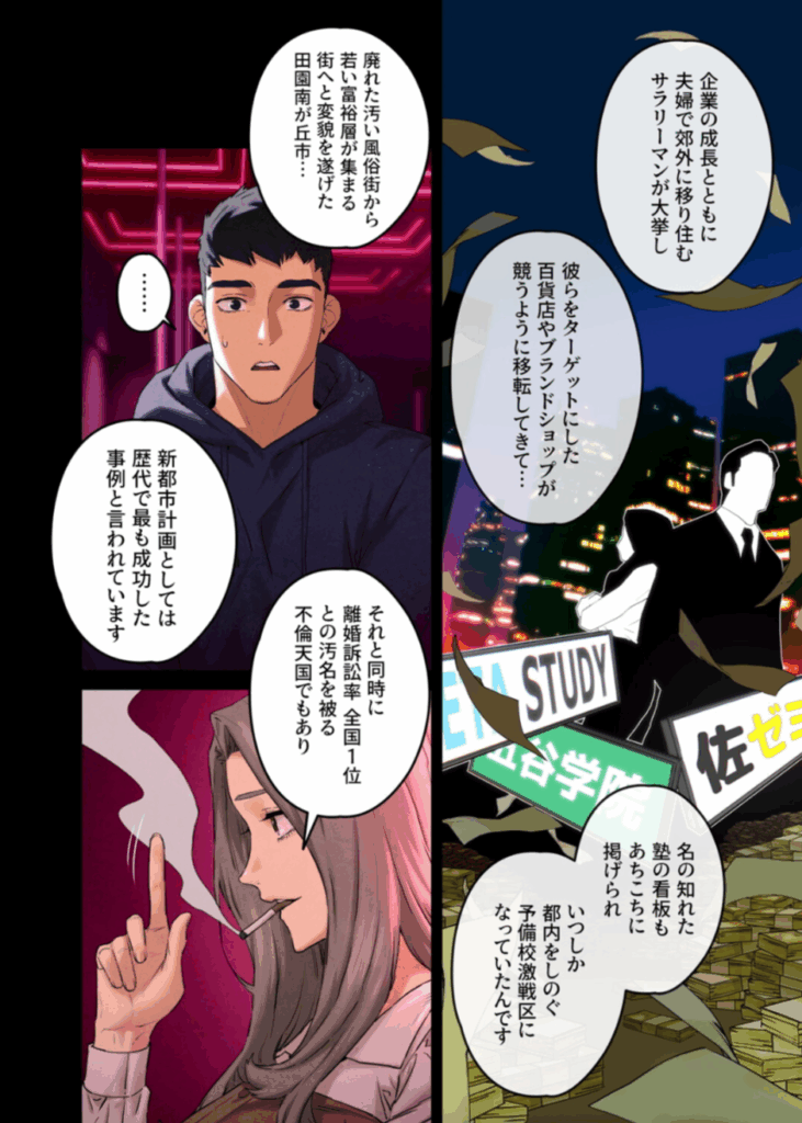 自慢と言えるのはカラダ一つな彼にその名刺は高額の対価と共に不倫天国と呼ばれる新都市・田園南が丘で新しい生活をもたらす。