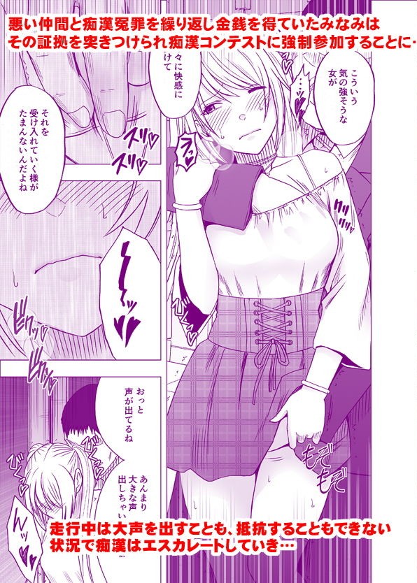 その卑猥なコンテストのターゲットとして狙われてしまった鉄道会社の社長令嬢「頼雲みなみ」は連日のようにさまざまな『競技者』たちに痴漢されて…。