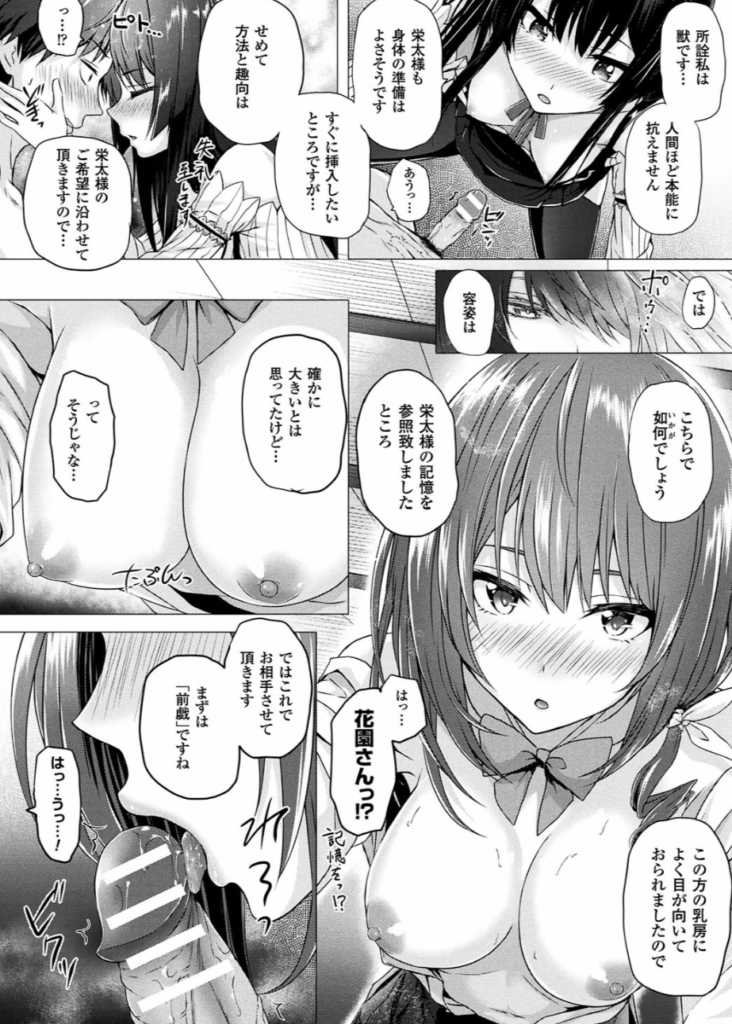 主人公が憧れる同級生に他者変身して精液をねだる黒猫使い魔のルチアも加わり、栄太に影響され発情する彼女達にも精液を提供することになる。