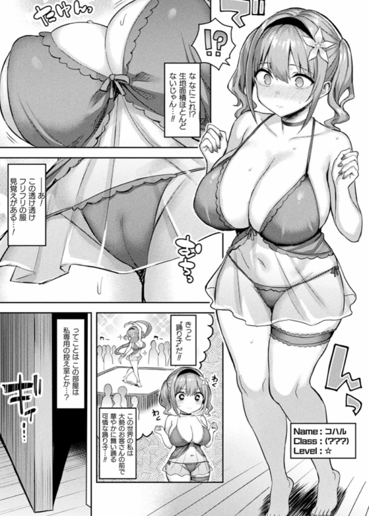 踊り子風娼婦としてゲームの世界で客を取らされ徐々に受け入れていくおとなしめの巨乳女子校生、