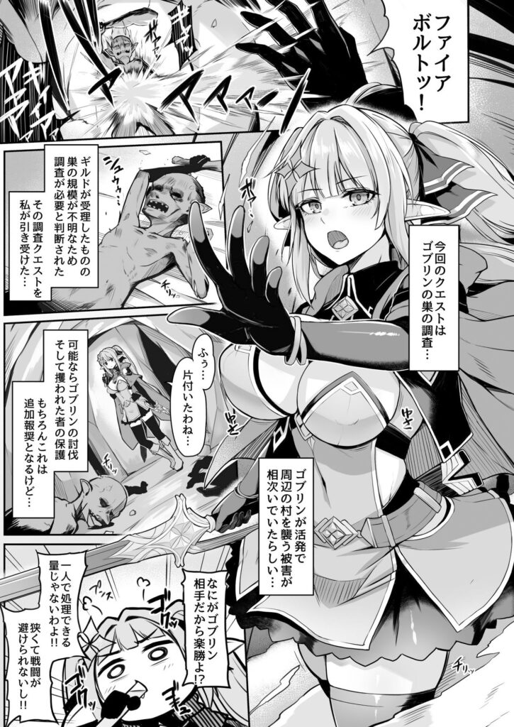 エルフの冒険者のシルヴィはゴブリン討伐のクエストを引き受け戦うも、