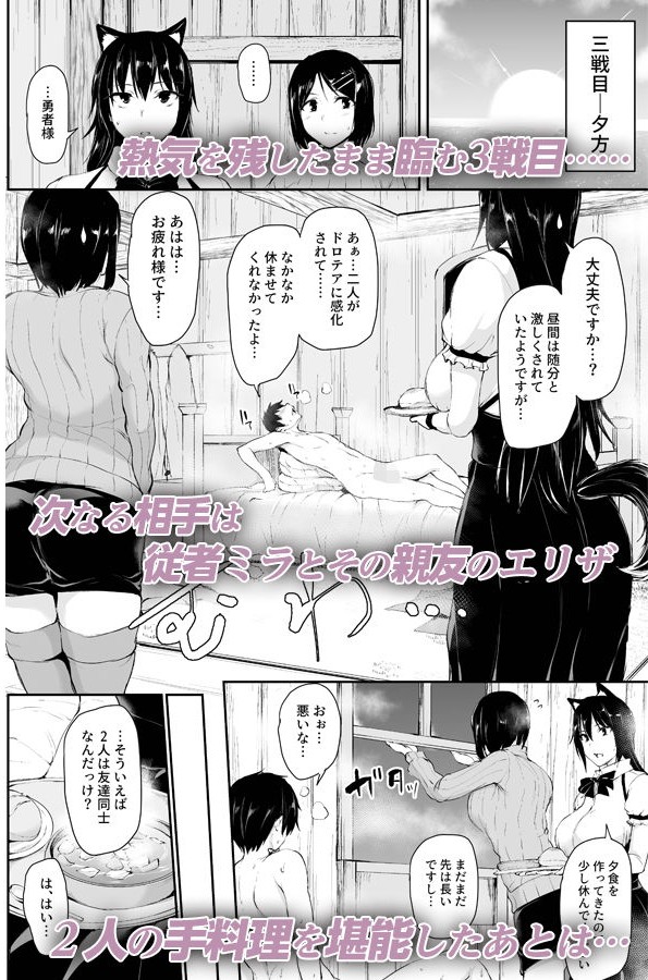 かくして山奥の小屋に揃った男一人と女三人。絶倫の勇者を前に彼女たちがただ見ているだけで満足するはずも無く……。