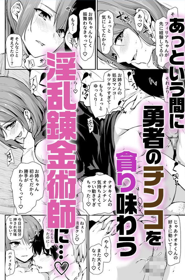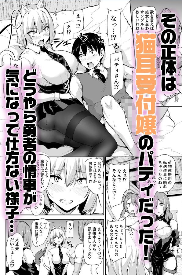 精液で女性をパワーアップさせることができる主人公が、様々な女性、種族とハーレムを築く物語です。今作では女剣士、シスター、エルフの弓使いの3人と4PハーレムHで童貞喪失という内容です。