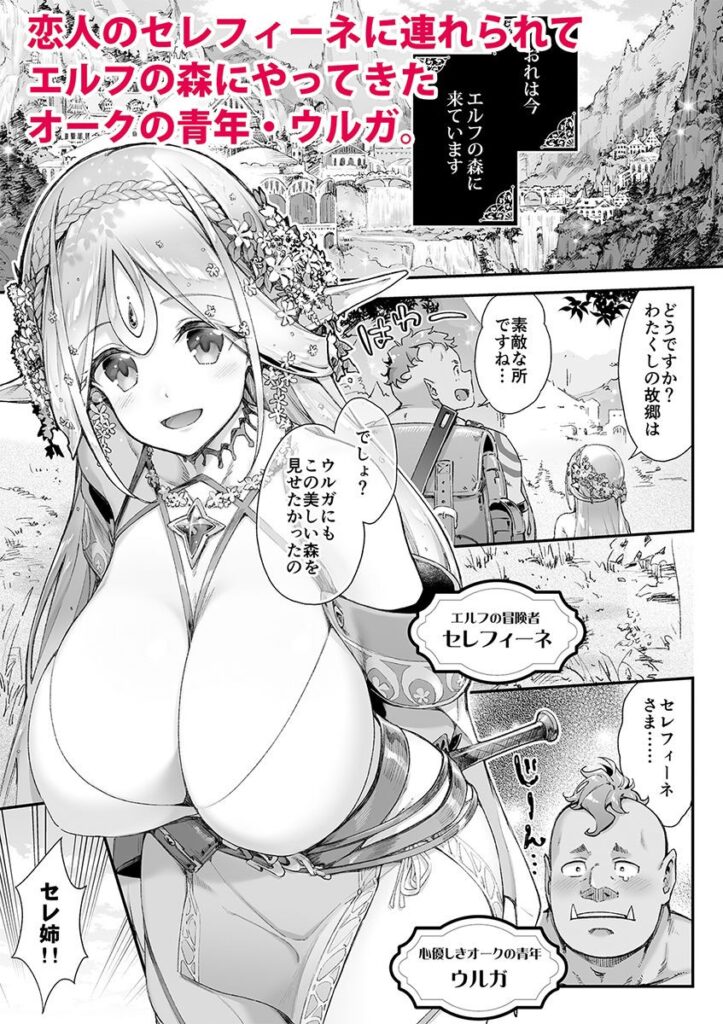 オークの青年とエルフのお姉さんの激しい異種和姦漫画です。セレフィーネの豊満なやわらかおっぱいをお楽しみください♪