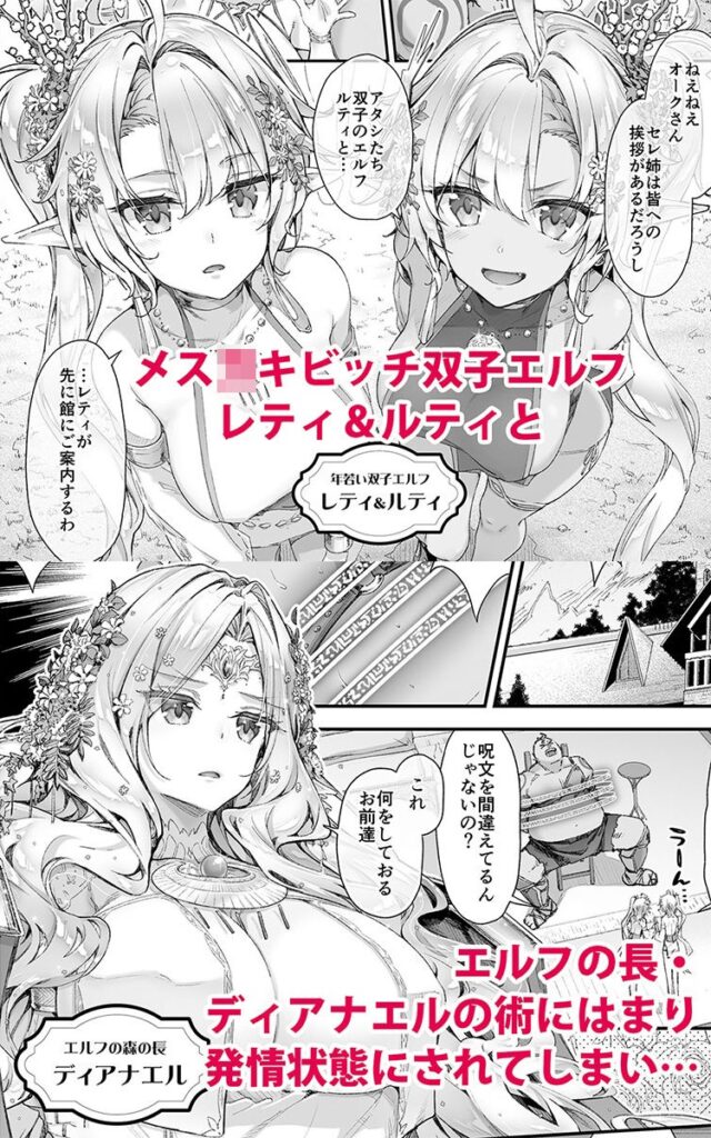 オークちんぽに興味津々♪な生意気ビッチ双子エルフ・レティ&ルティと、爆乳ムチムチ年増ボディなエルフの長・ディアナエルの術にはまり、