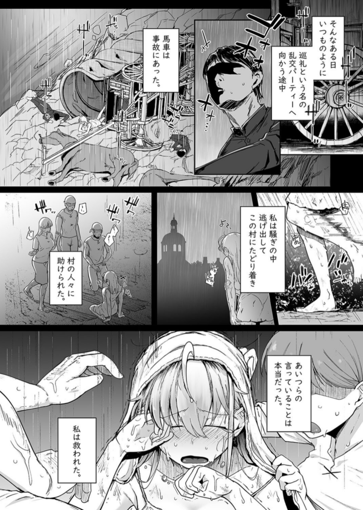 村人から『聞いてもらってばかりは悪いから、今日はシスターの懺悔を聞いてあげる』と言われ、シスターは村に来る前、性奴●だった自身の過去を打ち明けていく…