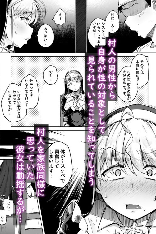 村人の悩みや懺悔を聞く中、村人の男性一人から自身が性的な対象として見られていることを知るシスター。