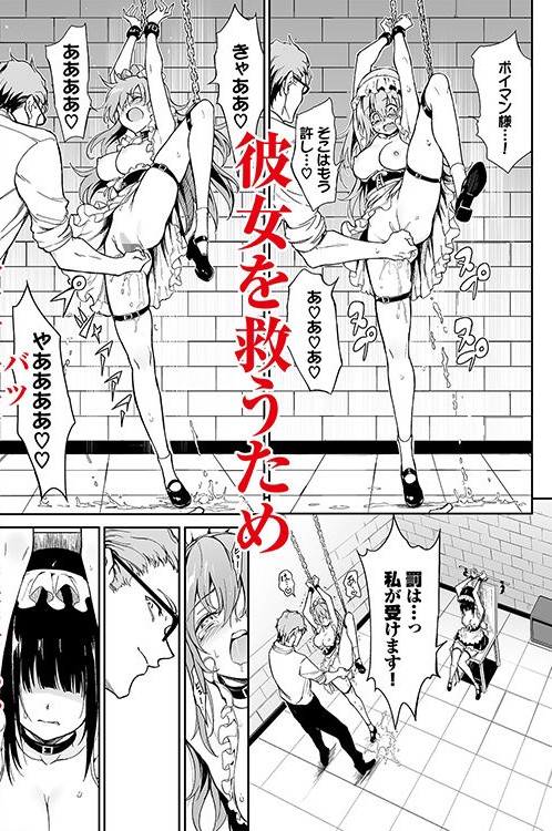 屋敷に連れ戻された椿が見たものは、ほぼ全裸でポイマンの『教育』に喘いでいる後輩メイド・カレンの姿だった。