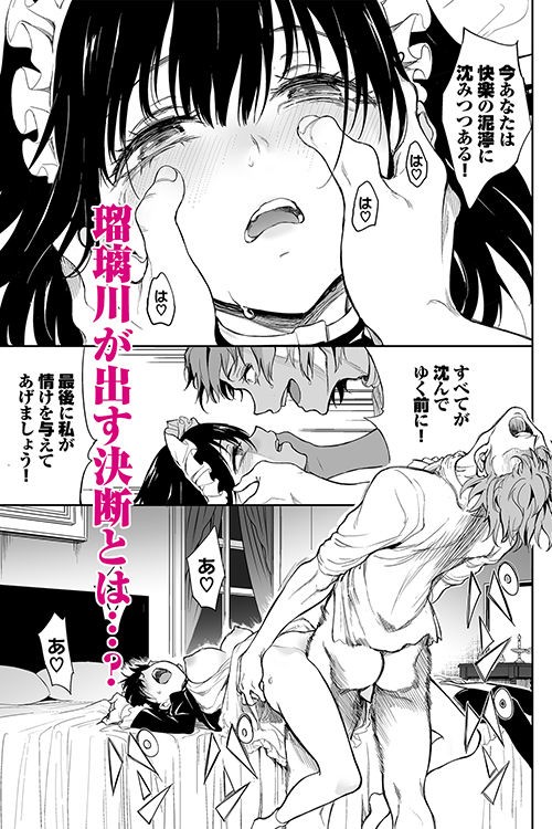 旧友リズの前で、犯●れ耐える瑠璃川だったが、次第に声が漏れはじめてしまう。
