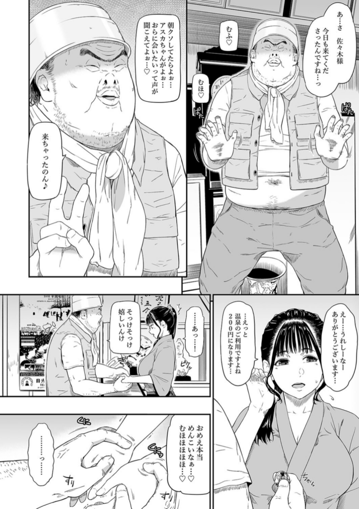 サダヨシは地元の温泉組合の2代目理事を務めている地主の一人。癖の強い風貌はマサモリと違い年相応の身なりをしているが、ヒメを見る目線は明らかに怪しげで…