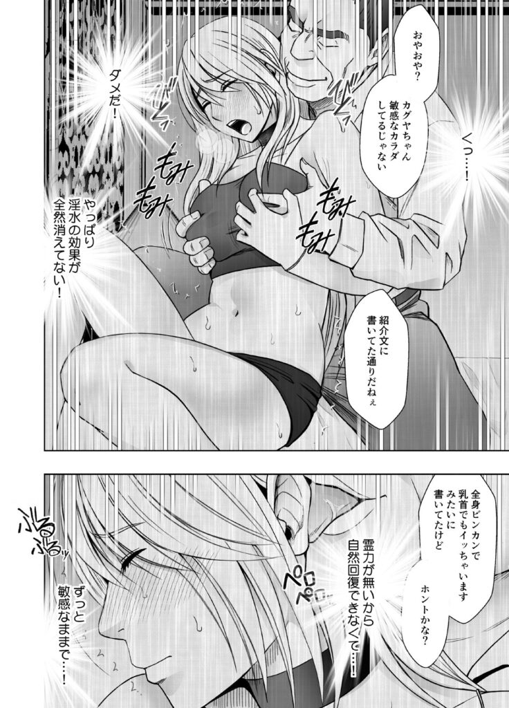 霊力を取り戻すため人間の精液を体内に取り込まなければならないカグヤ。一人目は失敗…そして次の相手は乳首バイブ、電マ、クリトリス電極責め、股縄擦り と特殊な性癖を持つ変態オヤジだった…。